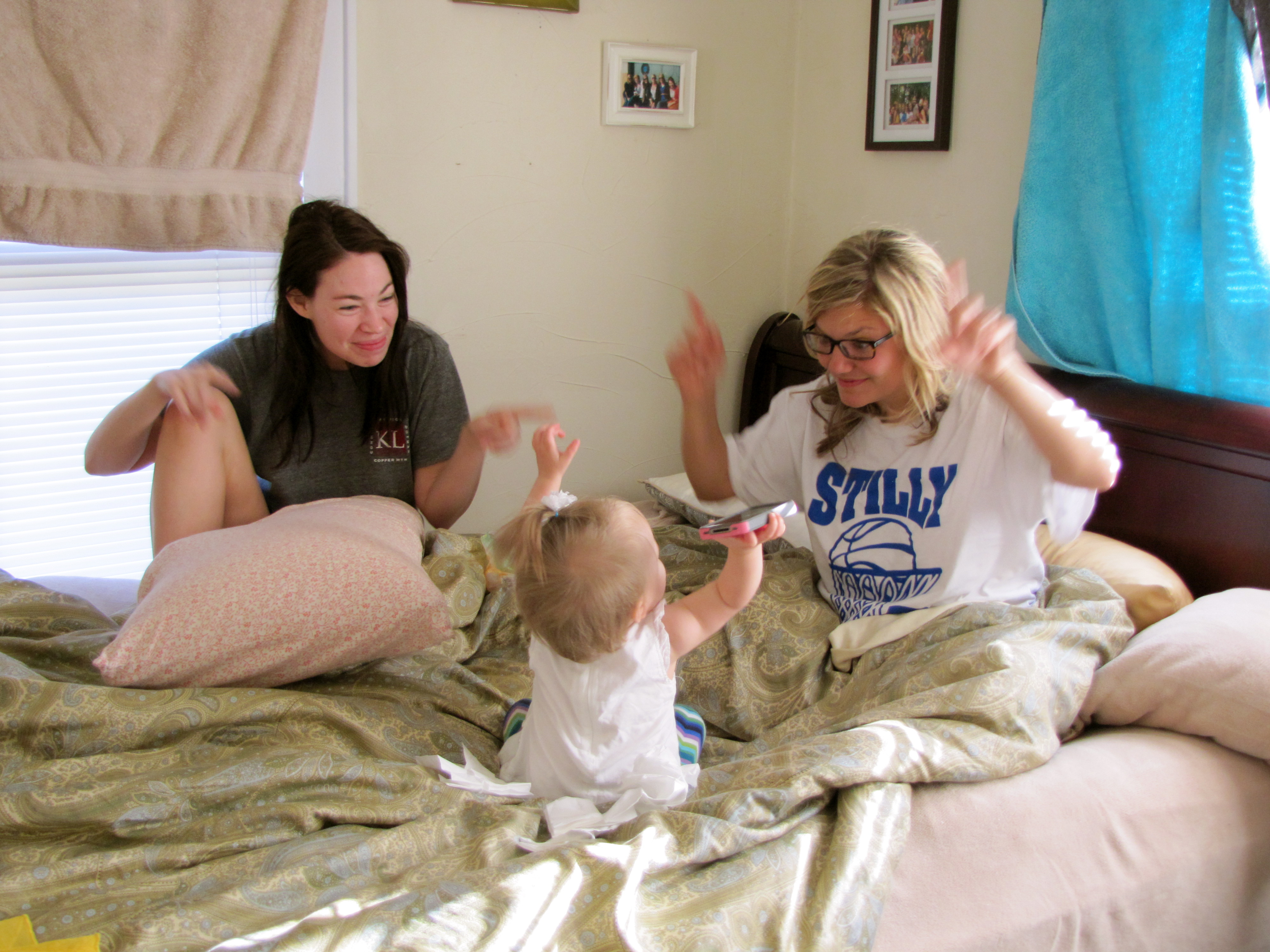 Ruth woke up her honorary Aunties at 7 am with a nice dance party. She has recently learned to raise the roof. Oh joy : )