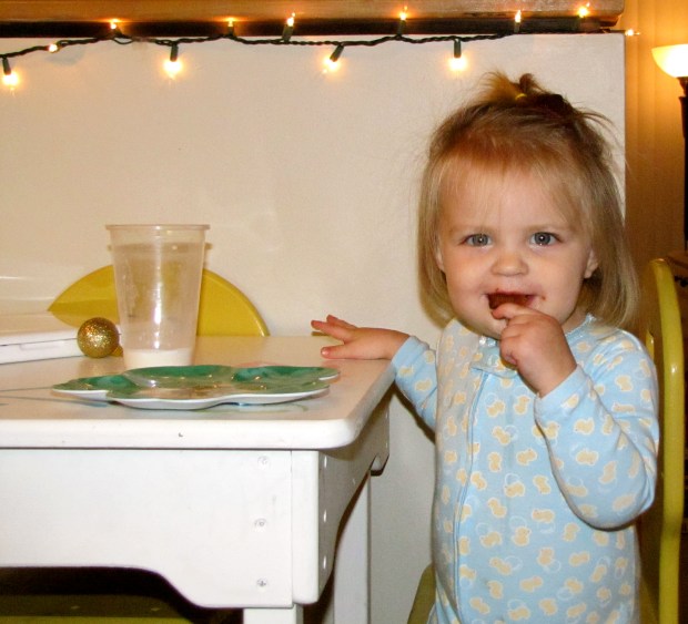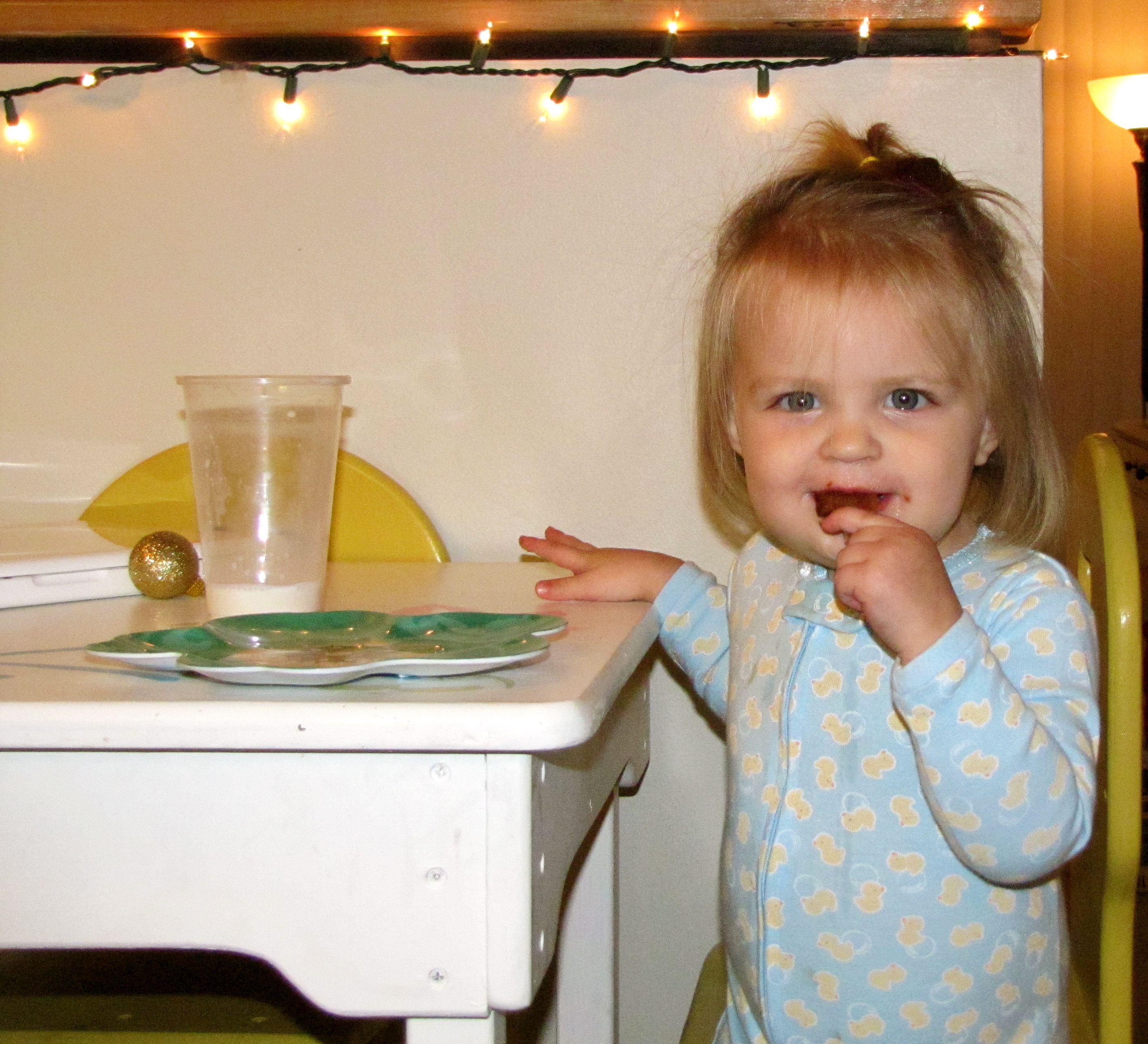 Above is our sweet girl enjoying a “coooookie”. Her favorite word and dessert!
