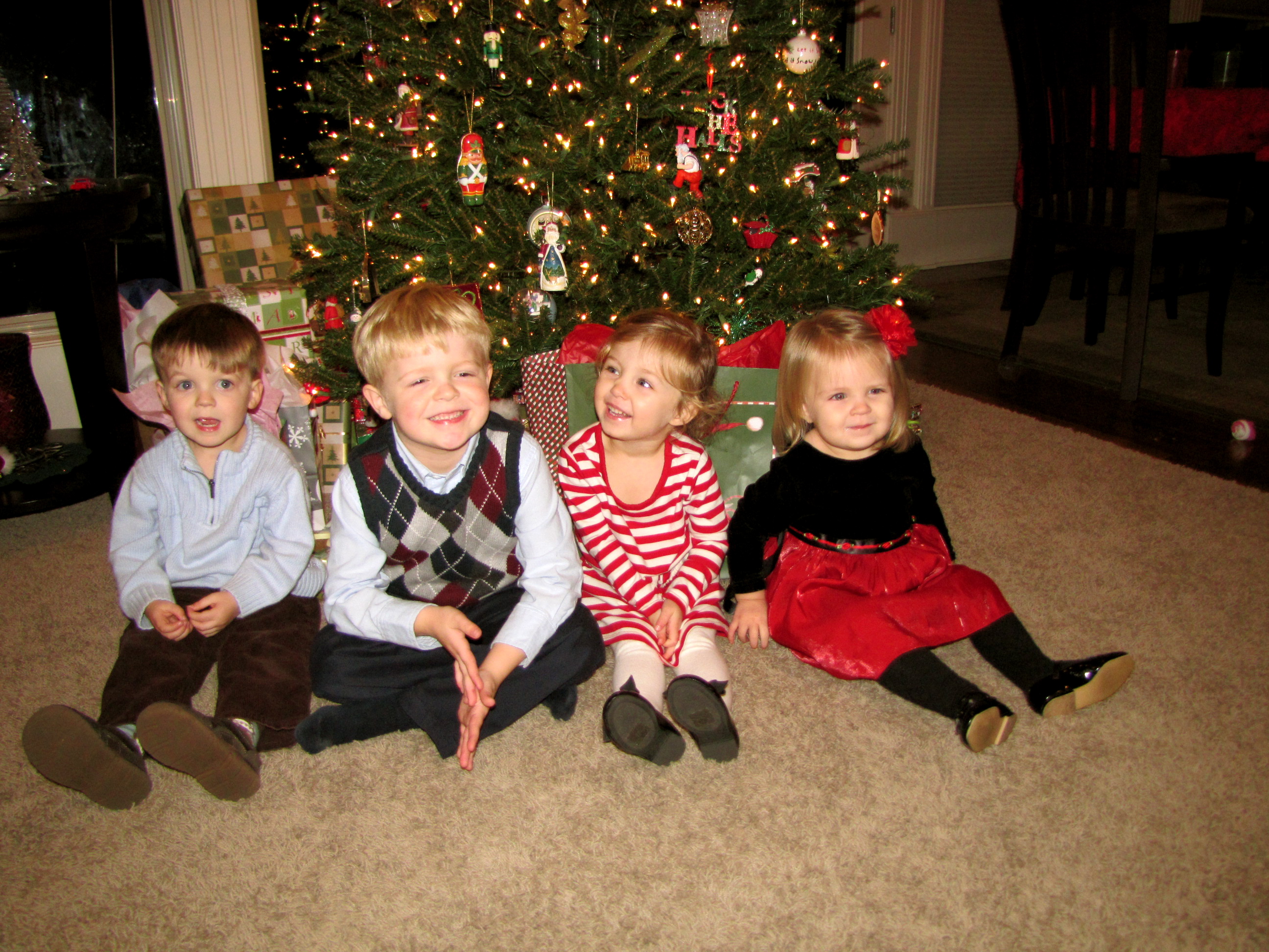 The cousins (Drew, Blake, Adelyn, and Ruth) at their last Christmas with just the four of them. Next Christmas there will be SEVEN!