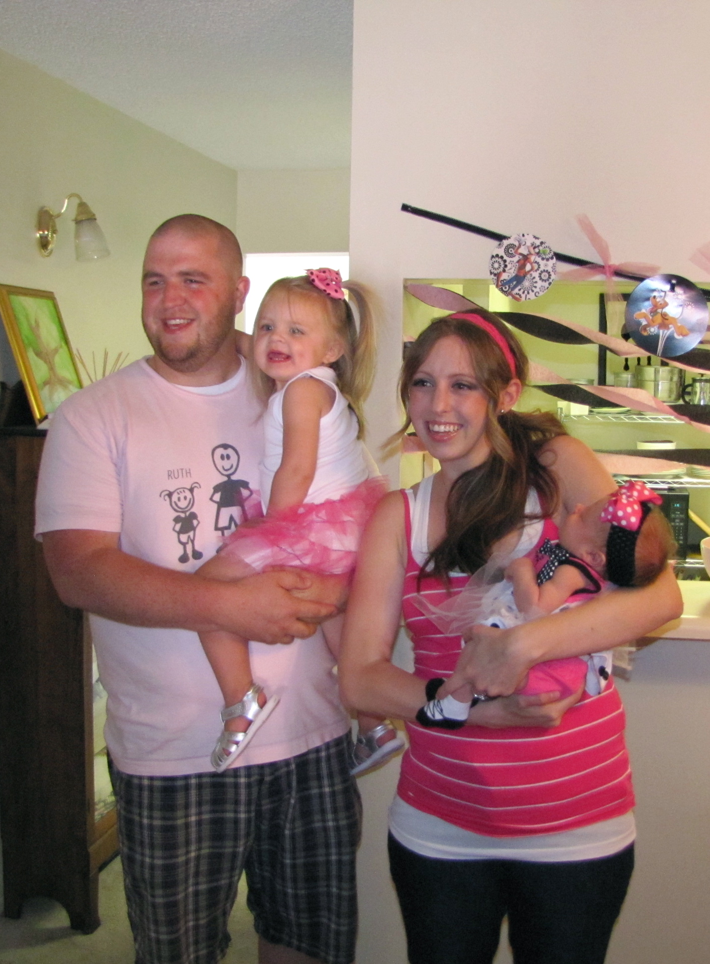 Our Happy Family of Four! Lydia slept through the whole party – what a stinker : )