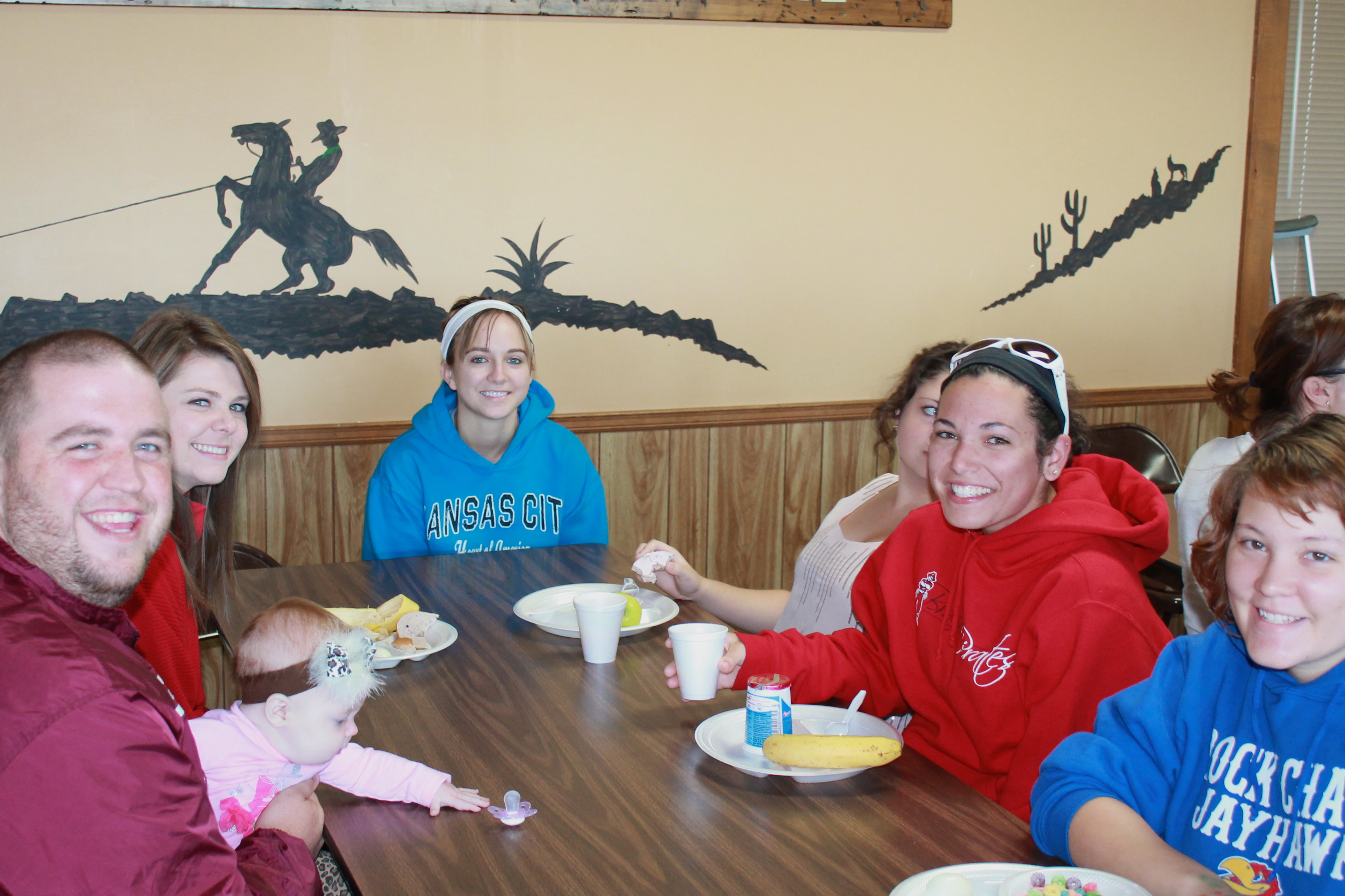 Ruth was little miss helper this weekend. Here she is above helping check in the KU girls when they arrived. She is fearless!