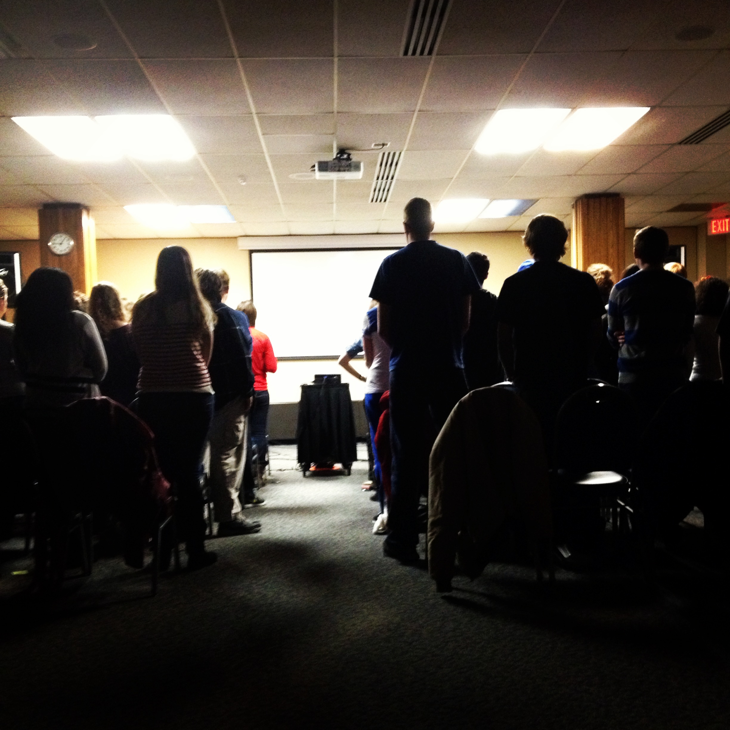 My view from sitting in the back of a weekly meeting (Worship together and a Message)