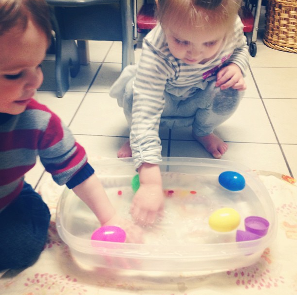 – This was a fun one! We read The Captain of the Storm in our Jesus Storybook Bible.  We put little plastic easter eggs in a tub of water and splashed with our hands and made lots of waves. We tried to yell at the waves to stop but they didn’t. We tried to make the waves stop with our hands but we couldn’t. Then we talked about how Jesus only had to say a word and the storm stopped. He is so awesome, even the wind and the waves obey Him.